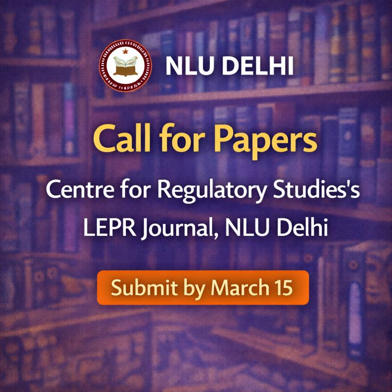 Submit your research to the LEPR Journal by the Centre for Regulatory Studies, NLU Delhi. Call for Papers open for high-quality submissions. Deadline: March 15.