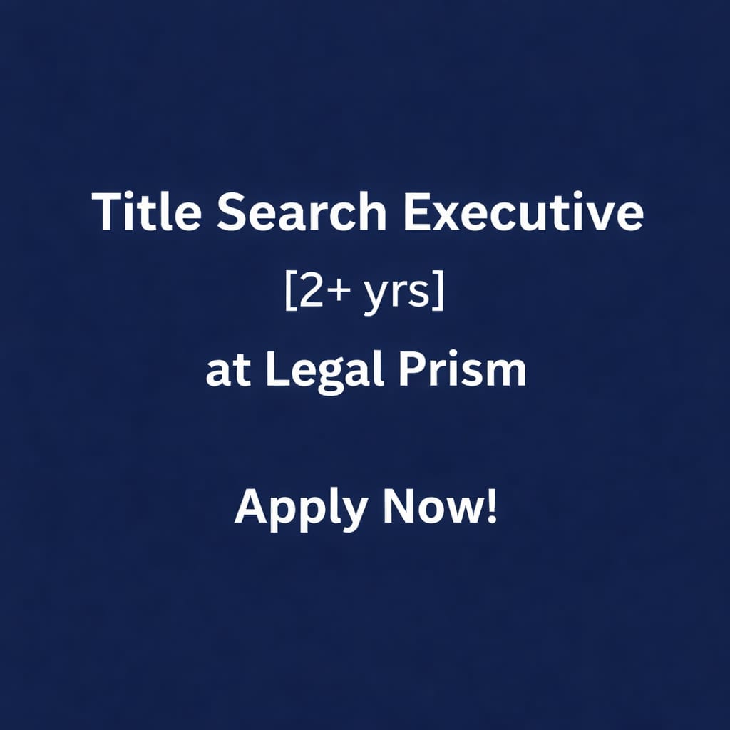 Legal Prism is looking to hire candidates for its Title Search vertical with 2+ years of relevant experience in conducting title searches and preparing search reports.