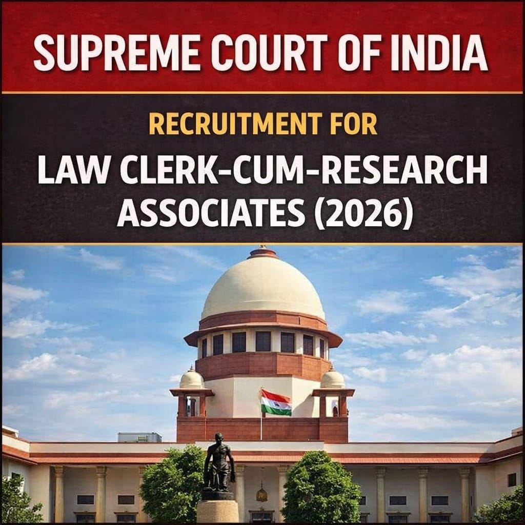 The Supreme Court of India has invited online applications for the position of Law Clerk-cum-Research Associate.