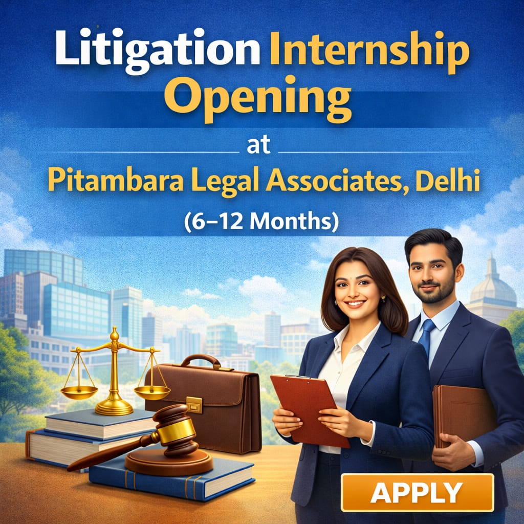 Litigation Internship Opening at Pitambara Legal Associates, Delhi– Apply Now!!