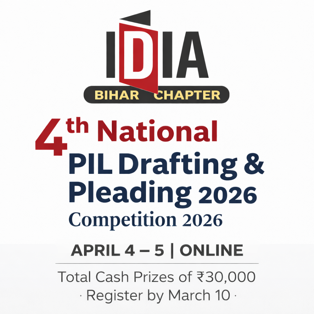 The 4th National PIL Drafting & Pleading Competition, 2026, is the flagship annual fundraising event of the IDIA Bihar Chapter. Participants are required to draft a Public Interest Litigation (PIL) to be filed before the Supreme Court of India on any contemporary issue.