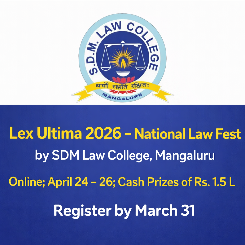 The Moot Court Society of SDM Law College is organising LEX ULTIMA 2026 from 24th to 26th April 2026. It is a unique national-level law fest that will culminate a host of competitions and will test the wit and knowledge of the students from India’s Law Colleges.