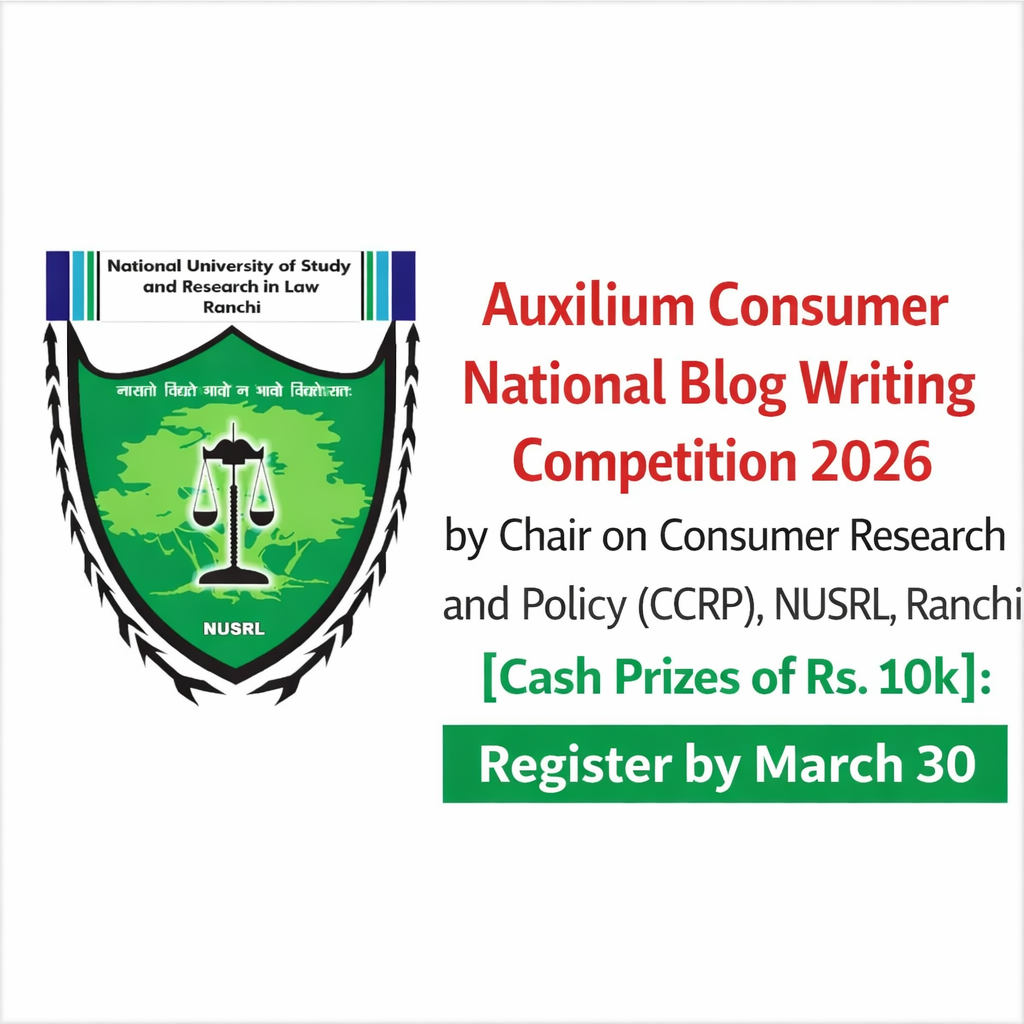 Auxilium Consumer National Blog Writing Competition 2026 by Chair on Consumer Research and Policy (CCRP), NUSRL, Ranchi