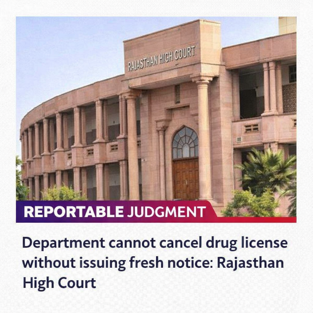 In a significant judgment, the Rajasthan High Court has held that before taking a stringent action such as cancellation of a drug license, the concerned authority must mandatorily issue a fresh show-cause notice.
