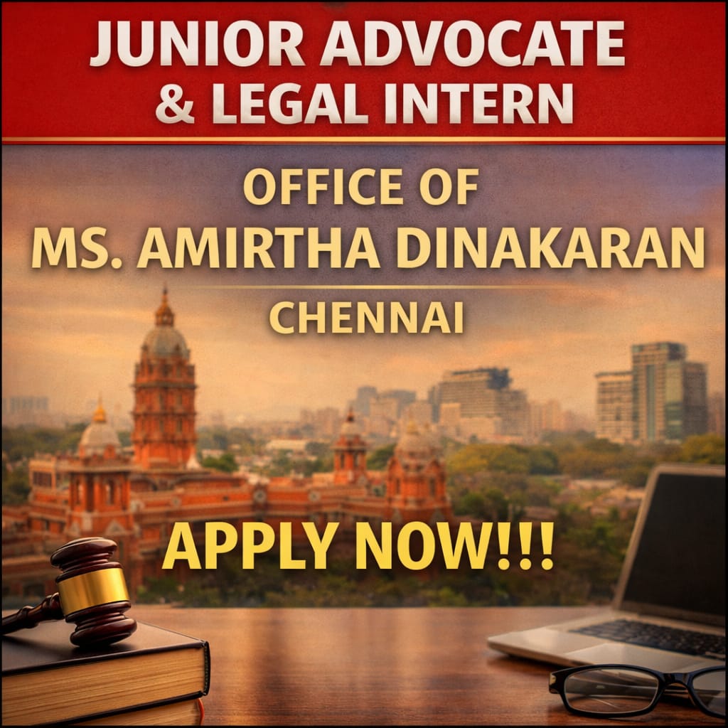 The Office of Ms. Amirta Dinakaran is inviting applications for a Junior Advocate and Legal Intern position.