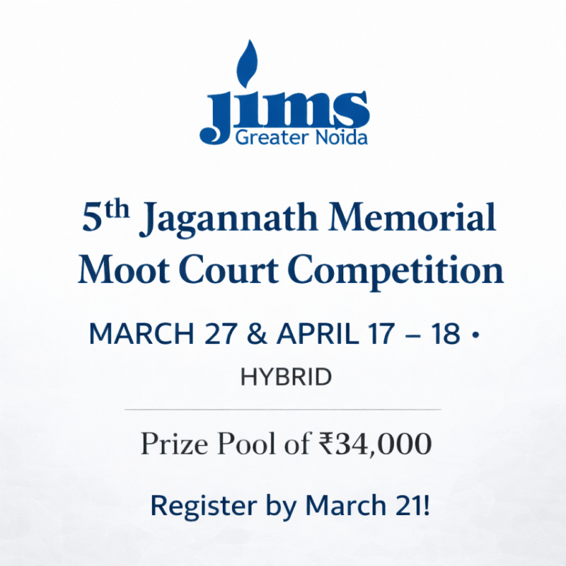 03 Mar Legal Competition 5th Jagannath Memorial Moot Court Competition by JIMS, Greater Noida March 3, 2026 By Lexful 0 comments About the Organisers The JIMS Engineering Management Technical Campus Department of Law, Greater Noida, has been a centre of excelle... Continue reading