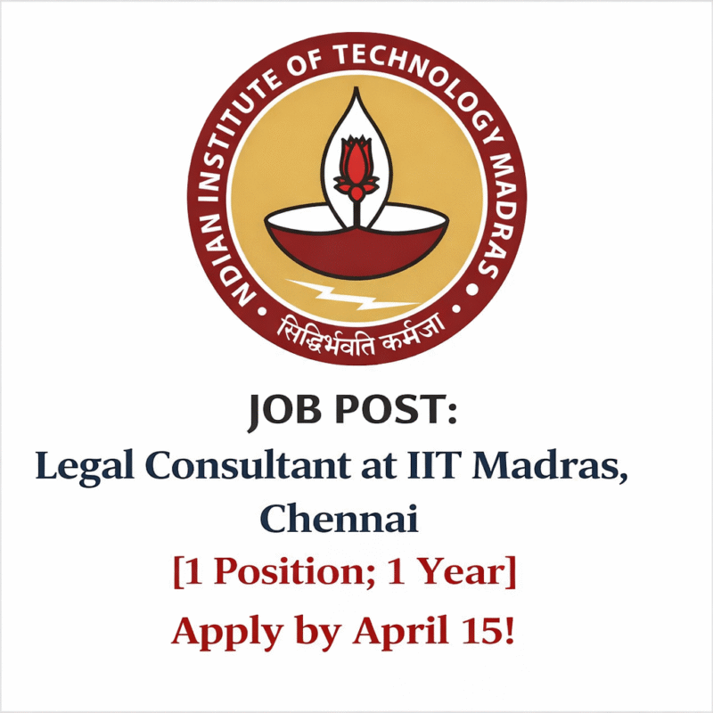 10 Apr Job Opportunity Legal Consultant at IIT Madras, Chennai April 10, 2026 By Lexful 0 comments About the Position Applications are invited for the temporary post of Legal Consultant for Legal Cell in the Office of IC&SR.IIT... Continue reading
