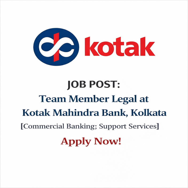 10 Apr Uncategorized Team Member Legal at Kotak Mahindra Bank, Kolkata | JOB April 10, 2026 By Lexful 0 comments About Kotak Mahindra Bank Kotak Mahindra Bank is a premier Indian financial services conglomerate established in 1985 (as an NBFC) a... Continue reading