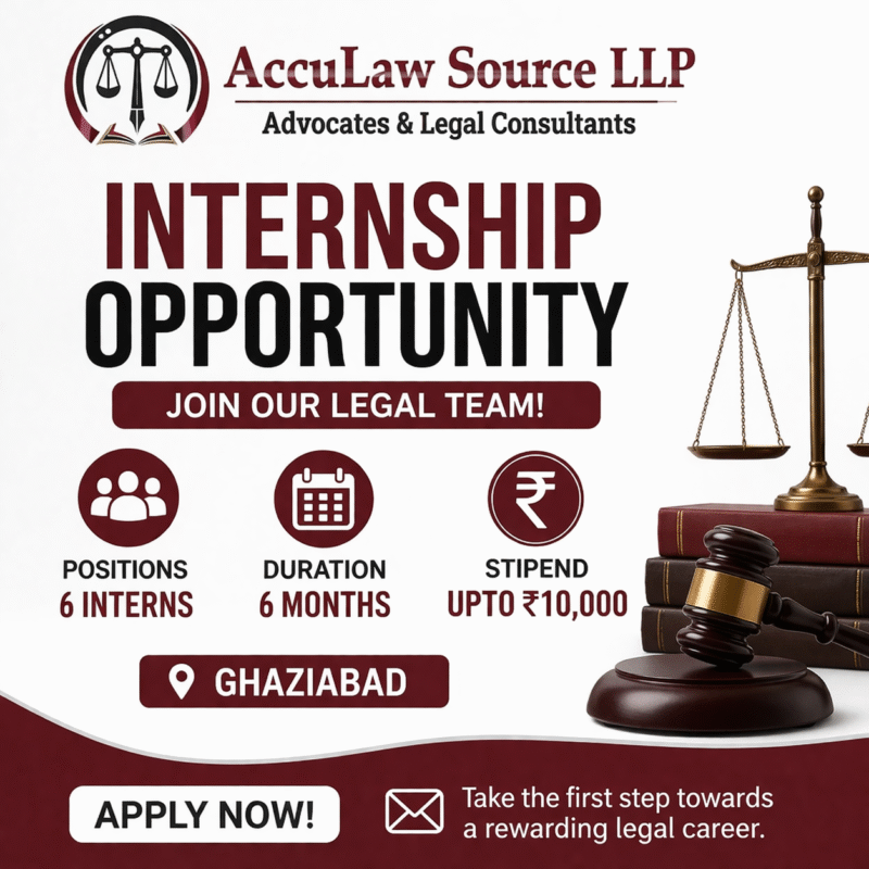 07 Apr Internship Opportunity Internship Opportunity at AccuLaw Source LLP April 7, 2026 By Lexful 0 comments About the Organisation AccuLaw Source LLP is a legal support and consulting firm specializing in property due diligence, title searc... Continue reading