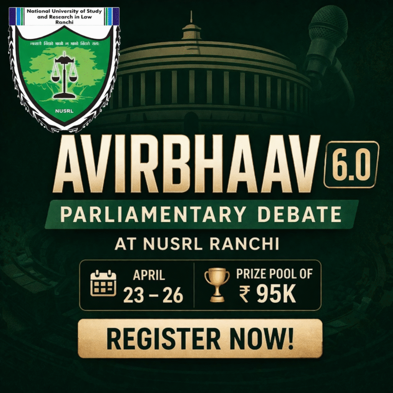 09 Apr Legal Competition Avirbhaav 6.0 – Parliamentary Debate at NUSRL Ranchi April 9, 2026 By Lexful 0 comments About the Organiser The National University of Study and Research in Law, Ranchi (NLU Ranchi), established in 2010 by the Jharkhand ... Continue reading