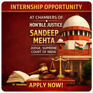 20 Dec Internship Opportunity Internship Opportunity at Chambers of Hon’ble Justice Sandeep Mehta, Judge, Supreme Court of India: Apply Now! December 20, 2025 By Lexful 0 comments About the Internship The Chambers of Hon’ble Mr. Justice Sandeep Mehta, Judge, Supreme Court of India, is now accepting applications... Continue reading