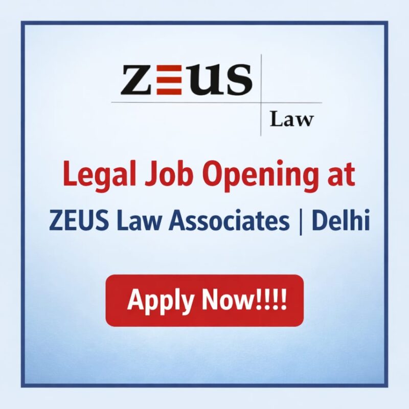 07 Mar Job Opportunity Legal job Opening at ZEUS Law Associates | Delhi | Apply Now!!!! March 7, 2026 By Lexful 0 comments About the Firm ZEUS Law Associates is an ISO-certified full-service law firm headquartered in New Delhi. The firm provides serv... Continue reading
