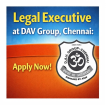 01 Jan Job Opportunity Legal Executive at DAV Group, Chennai: Apply Now! January 1, 2026 By Lexful 0 comments About DAV Group, Chennai The DAV Group in Chennai refers to the D.A.V. (Dayanand Anglo-Vedic) Public Schools network, managed by the... Continue reading