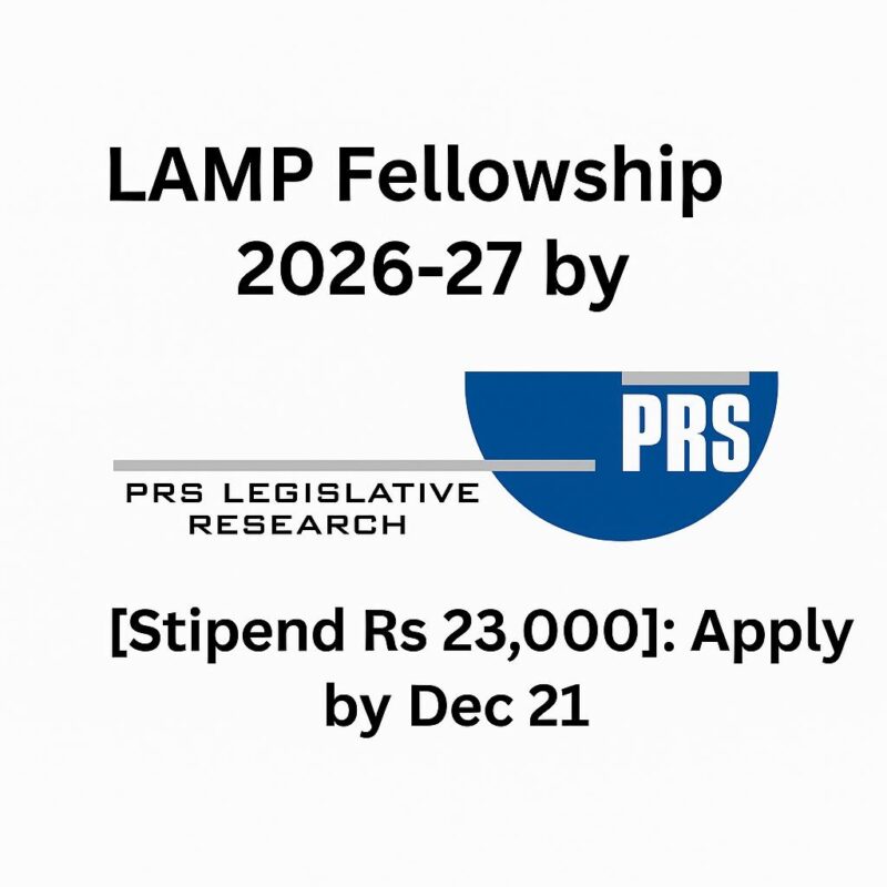 09 Dec Job Opportunity LAMP Fellowship 2026-27 by PRS Legislative Research [Stipend Rs 23,000]: Apply by Dec 21 December 9, 2025 By Lexful 0 comments About PRS Legislative Research PRS Legislative Research, commonly referred to as PRS, is an Indian non-profit organisation that was ... Continue reading