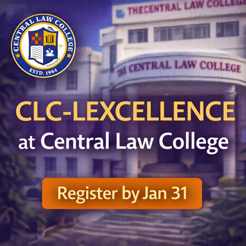 10 Jan Legal Competition CLC-LEXCELLENCE at Central Law College | Register Now January 10, 2026 By Lexful 0 comments About the College The Central Law College was founded by Prof. R.V. Dhanapalan in the year 1984. The College is recognised by the Ba... Continue reading