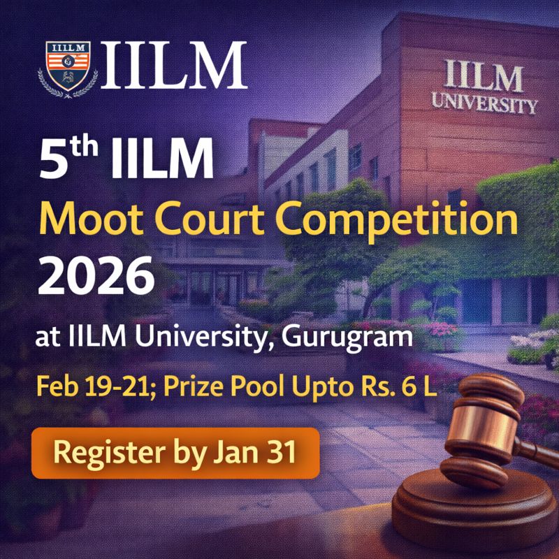 12 Jan Legal Competition 5th IILM Moot Court Competition 2026 | Gurugram January 12, 2026 By Lexful 0 comments Register for the 5th IILM Moot Court Competition 2026 at IILM University, Gurugram, scheduled from Feb 19–21. Compete for a prize pool ... Continue reading