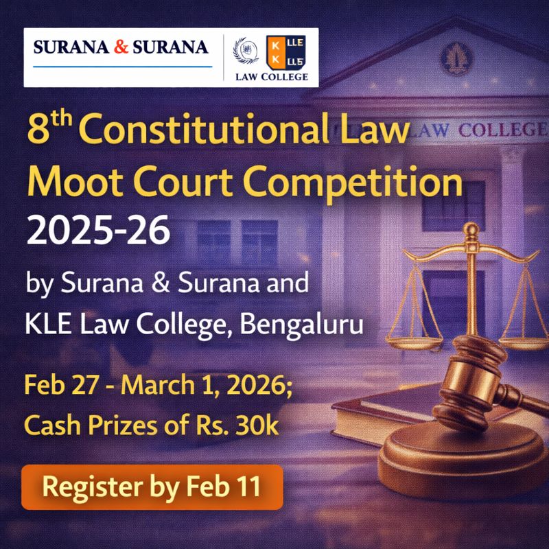 12 Jan Legal Competition 8th Constitutional Law Moot Court Competition 2026 January 12, 2026 By Lexful 0 comments About KLE Law College, Bengaluru K.L.E Law College, Bengaluru, was established in 1975 under the umbrella of Karnataka Lingayat Educ... Continue reading