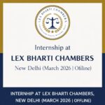 Internship Opportunity Internship at Lex Bharti Chambers, New Delhi (March 2026 | Offline) February 17, 2026 No Comments
