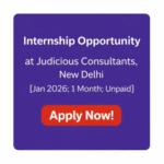 Internship Opportunity Internship Opportunity at Judicious Consultants, New Delhi : Apply Now! December 30, 2025 No Comments