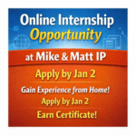 Internship Opportunity Online Internship Opportunity at Mike & Matt IP: APPLY NOW!! January 1, 2026 No Comments