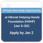 Internship Opportunity Internship Opportunity at Hikmat Helping Hands Foundation (HHHF): APPLY NOW! January 1, 2026 No Comments