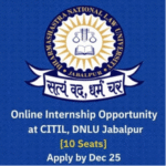 Internship Opportunity Internship Opportunity at CITIL, DNLU Jabalpur : APPLY NOW!! December 26, 2025 No Comments