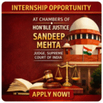 Internship Opportunity Internship Opportunity at Chambers of Hon’ble Justice Sandeep Mehta, Judge, Supreme Court of India: Apply Now! December 20, 2025 No Comments