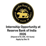Internship Opportunity Internship Opportunity at Reserve Bank of India 2026 : APPLY NOW! December 11, 2025 No Comments