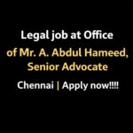 Job Opportunity Legal job at Office of Mr. A. Abdul Hameed, Senior Advocate | Chennai | Apply now!!!! March 12, 2026 No Comments