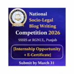 Legal Competition National Socio-Legal Blog Writing Competition 2026 by SSSIS at RGNUL, Punjab March 23, 2026 No Comments