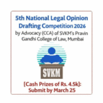 Legal Competition 5th National Legal Opinion Drafting Competition 2026 by Advocacy (CCA) of SVKM’s Pravin Gandhi College of Law, Mumbai March 26, 2026 No Comments
