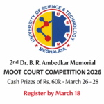 Legal Competition 2nd Dr. B.R. Ambedkar Memorial Moot Court Competition 2026 at University of Science & Technology Meghalaya (USTM) March 7, 2026 No Comments